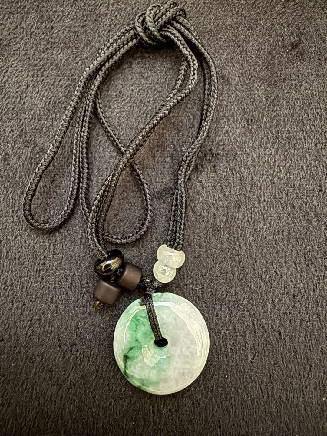 Burmese Jade Donut Pendant on Black Adjustable Cord