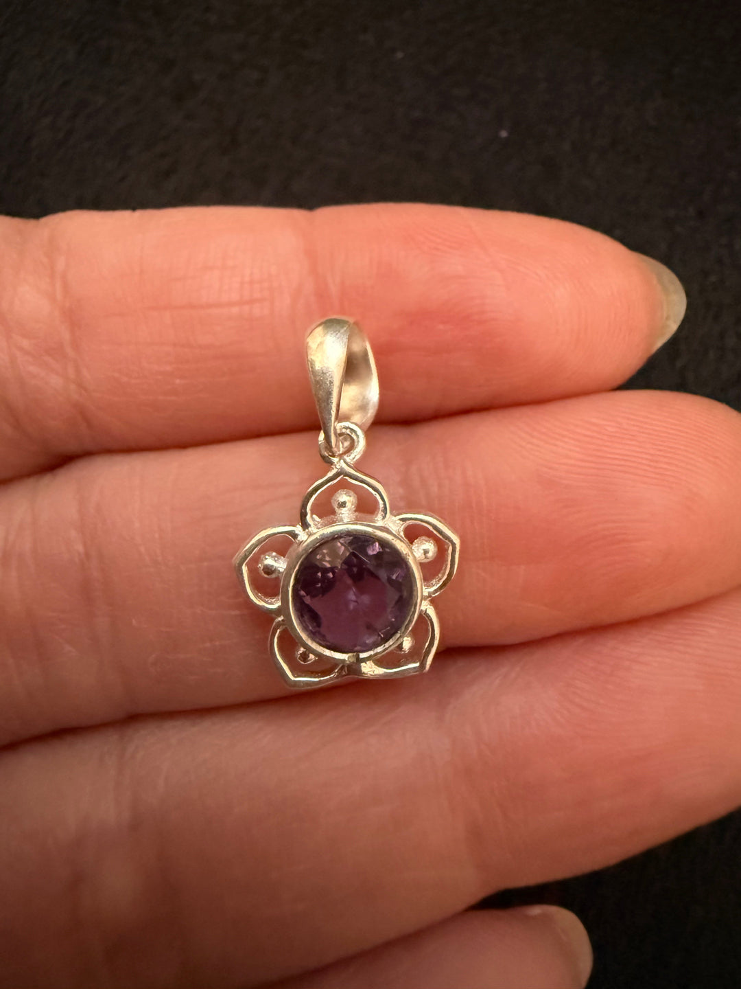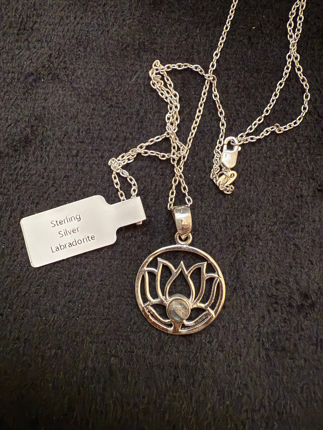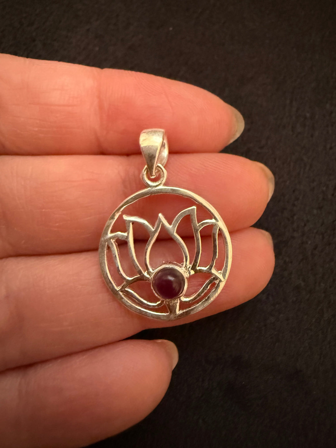 Lotus Flower Gemstone Pendant – Sterling Silver